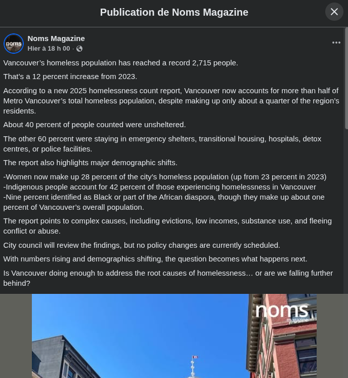 Tout va bien à Vancouver 15 avril 2026 | Pas de commentaire Source : https://www.facebook.com/nomsmag/posts/pfbid029v6TUKYVEdZyv5TJLK1fifZTr9fVrcdM9gbzSQ4zwD4QVpFiNuFuwqf1AGw2Km8al Non classé